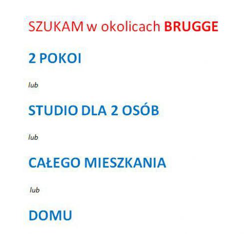 Szukam 2 pokoi / studio / całego mieszkania lub domu - BRUGGE i okoliceROI